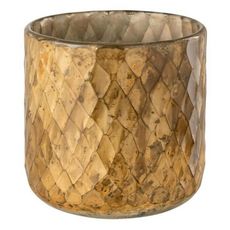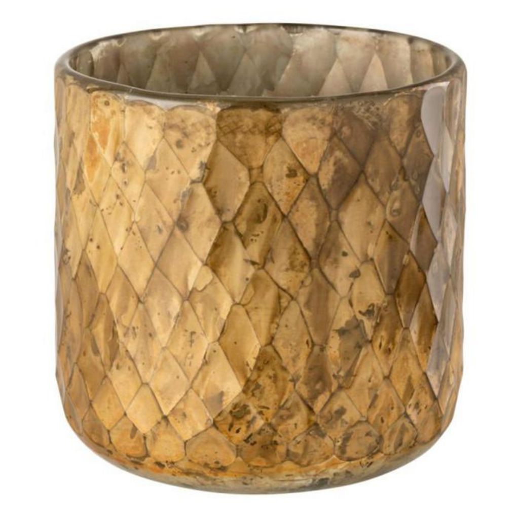 Photophore en Verre Design Quadrillé 14cm Or