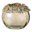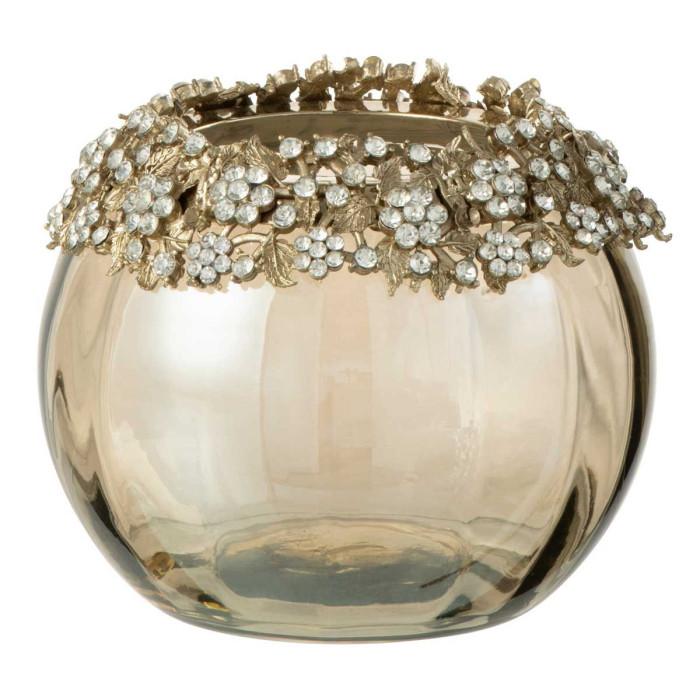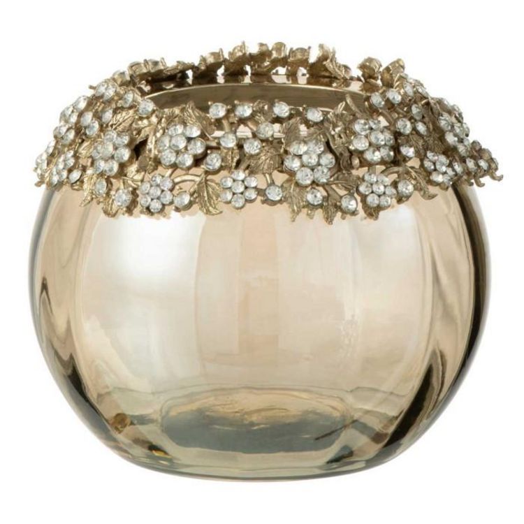 Informations Techniques : Dimensions : L. 14 x l. 10 x H. 14 cm Matières : 64% Verre & 36% Laiton Spécificités : Déco & Chic Photophore design Détails floraux Forme ronde Bougie non incluse Vendu à l'unité Poids : 0,63 kg Couleur : Or & Bronze