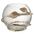 Informations Techniques : Dimensions : D. 10 x H. 13 cm Matières : 70% Verre & 30% Métal Spécificités : Élégant & Déco Photophore rond Détails feuilles Bougie non incluse Vendu à l'unité Poids : 0,73 kg Couleur : Transparent & Or
