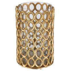 Informations Techniques : Dimensions : D. 20 x H. 32 cm Matière : Aluminium Spécificités : Pratique & Utile Photophore à Poser Forme Ronde Design Cercles Poids : 1,7 kg Couleur : Or