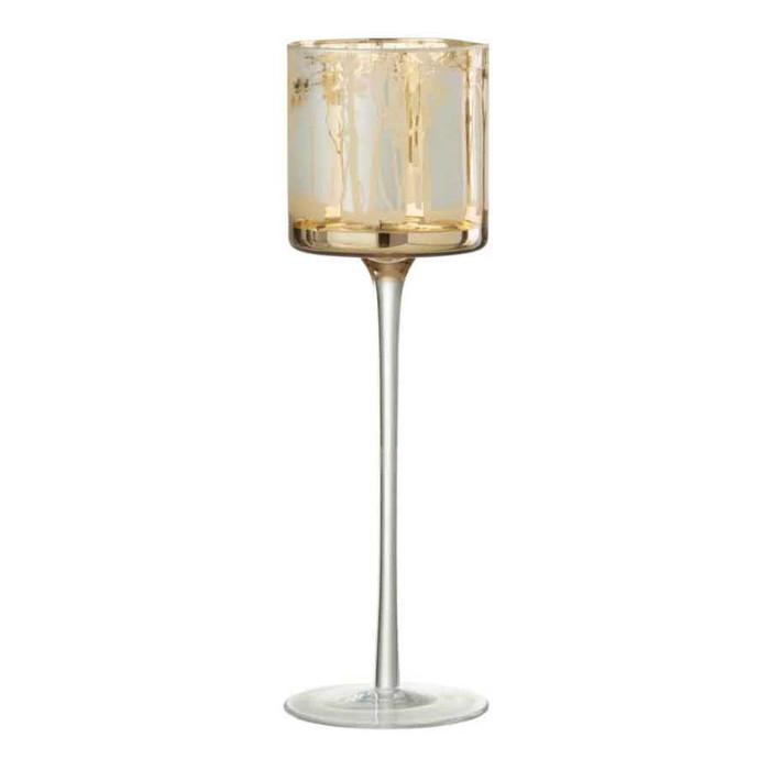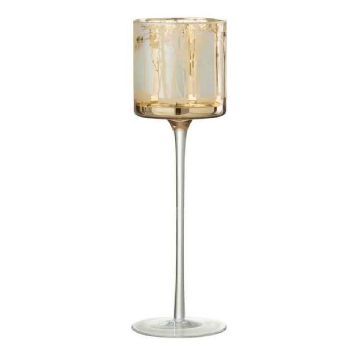 Informations Techniques : Dimensions : D. 9 x H. 30 cm Matière : Verre Spécificités : Tendance & Chic Photophore Design Sur Pied Forme Ronde Motif Arbre Poids : 0,28 kg Couleur : Or