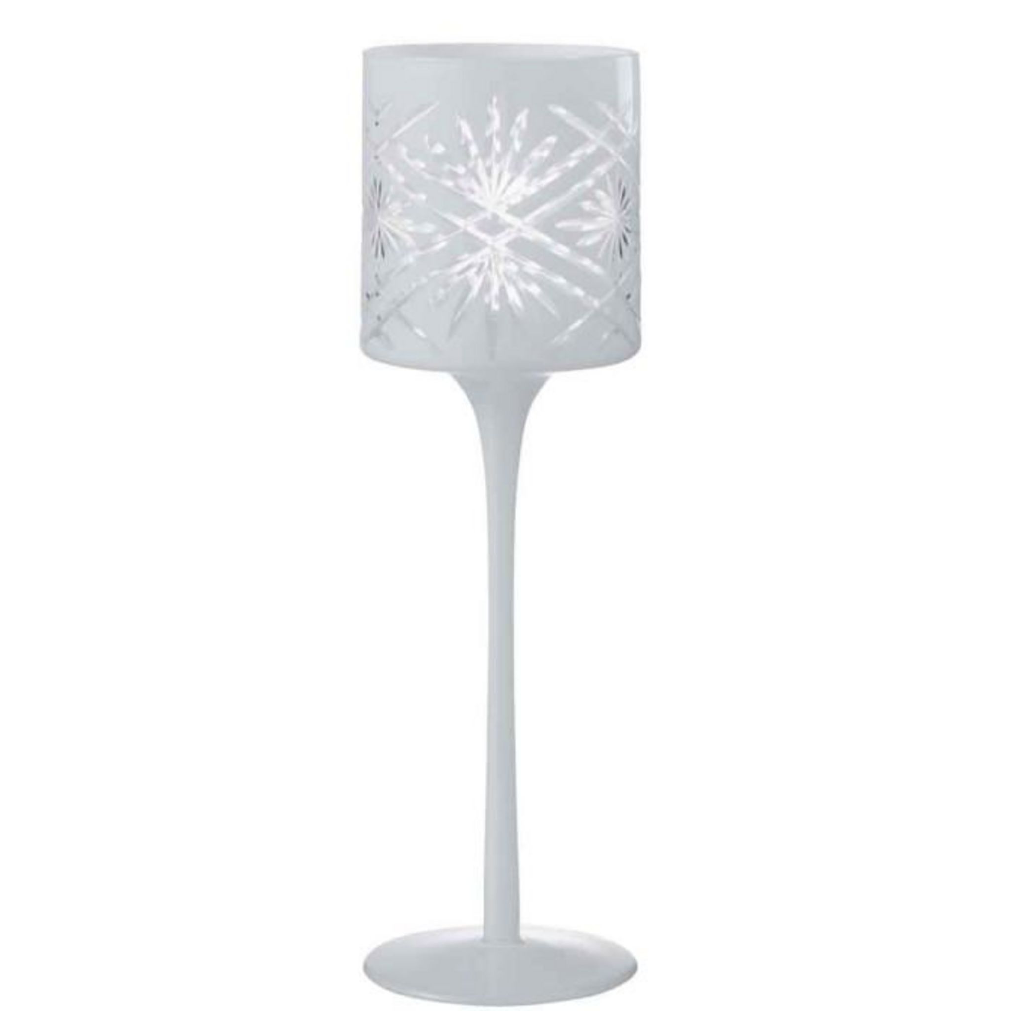 Informations Techniques : Dimensions : D. 9 x H. 30 cm Matière : Verre Spécificités : Pratique & Tendance Photophore sur Pied Forme Ronde Poids : 0,28 kg Couleur : Blanc