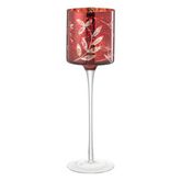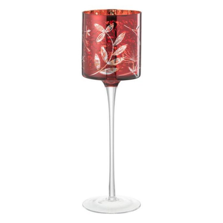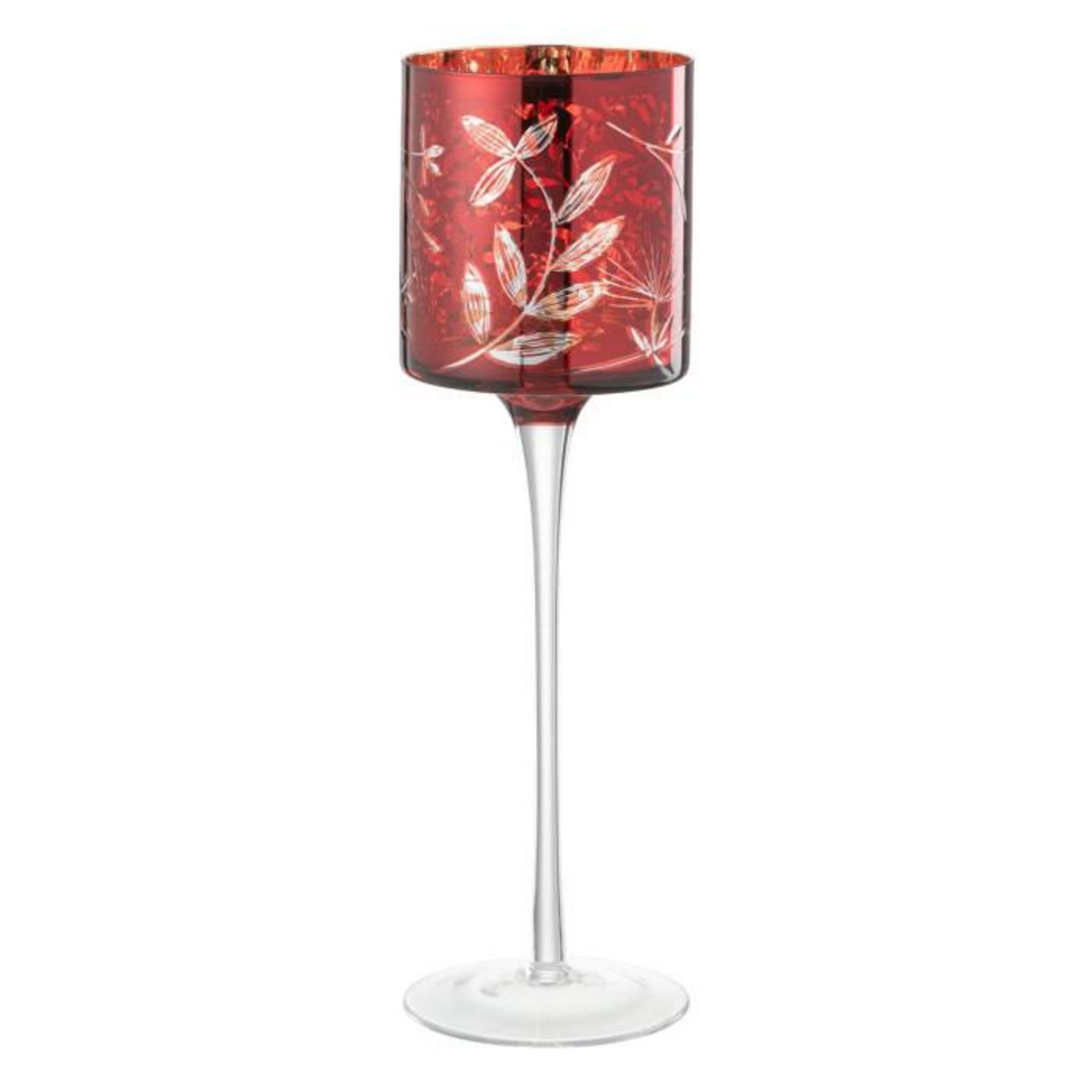 Photophore sur Pied en Verre Feuilles 30cm Rouge