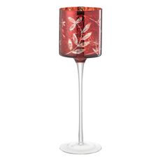 Informations Techniques : Dimensions : D. 9 x H. 30 cm Matière : 100% Verre Spécificités : Élégant & Design Photophore sur pied Motifs feuilles Bougie non incluse Vendu à l'unité Poids : 0,23 kg Couleur : Rouge