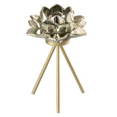 Informations Techniques : Dimensions : L. 12 x l. 18 x H. 18 cm Matière : Verre Spécificités : Tendance & Original Photophore sur Pied Design Fleur Poids : 0,4 kg Couleur : Or