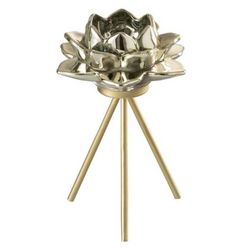 Photophore sur Pied Fleur Verre 18cm Or