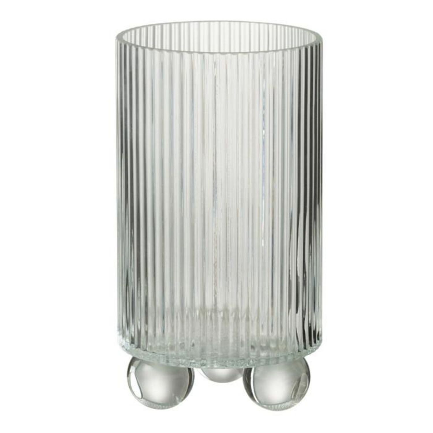 Informations Techniques : Dimensions : D. 12 x H. 21,5 cm Matière : 100% Verre Spécificités : Déco & Fonctionnel Photophore cylindrique Design rainuré Peut servir de vase Bougie non incluse Vendu à l'unité Poids : 0,86 kg Couleur : Transparent
