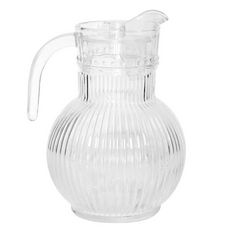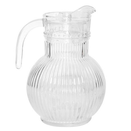Informations Techniques : Dimensions : L. 22 x l. 18 cm Matière : Verre Spécificités : Pratique & Utile Pichet Déco Forme Ronde Design Strié Contenance : 1,8 L Poids : 0,837 kg Couleur : Transparent