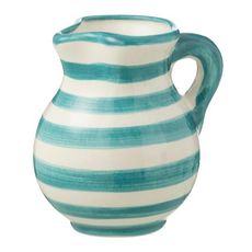 Informations Techniques : Dimensions : L. 12 x l. 12 x H. 13 cm Matière : 100% Céramique Spécificités : Pratique & Utile Pichet bicolore Motifs à rayures Vendu à l'unité Capacité : 0,5 L Compatibilités : Four, lave-vaisselle et micro-ondes Poids : 0,33 kg Couleur : Bleu Aqua & Blanc