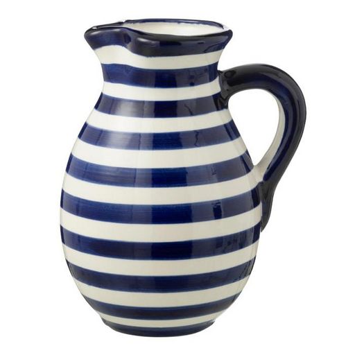 Informations Techniques : Dimensions : L. 20 x l. 20 x H. 26 cm Matière : 100% Céramique Spécificités : Pratique & Utile Pichet bicolore Motifs à rayures Vendu à l'unité Capacité : 3,3 L Compatibilités : Four, lave-vaisselle et micro-ondes Poids : 1,24 kg Couleur : Bleu Cobalt & Blanc