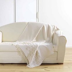 Informations Techniques : Dimensions : L. 150 x l. 125 cm Matière : Coton Spécificités : Pratique & Tendance Plaid déco A Franges Poids : 0,695 kg Couleur : Naturel