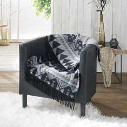 Plaid à Franges Jacquard Rodeo 120x150cm Noir