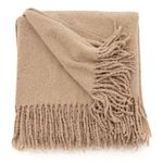 Informations Techniques : Dimensions : L. 170 x l. 130 x H. 0,5 cm Matière : Polyester Spécificités : Doux & Chaud Plaid à franges Points de couleurs Poids : 0,68 kg Couleur : Beige