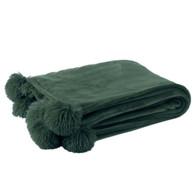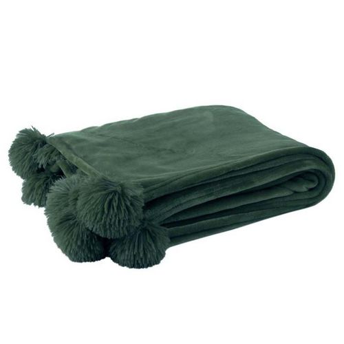 Plaid à Pompons Blanket 130x170cm Bleu Pétrole