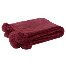 Plaid à Pompons Blanket 130x170cm Bordeaux