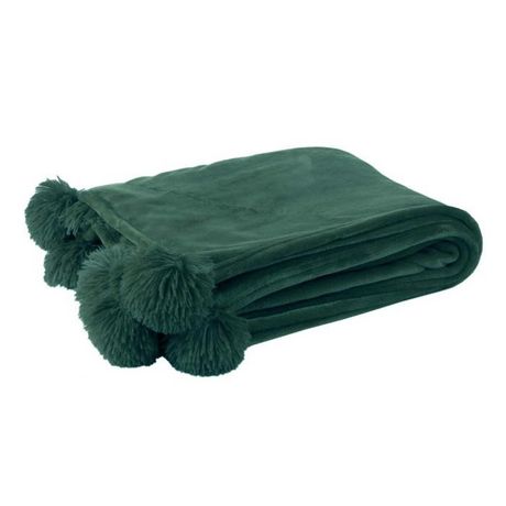 Plaid à Pompons Blanket 130x170cm Vert