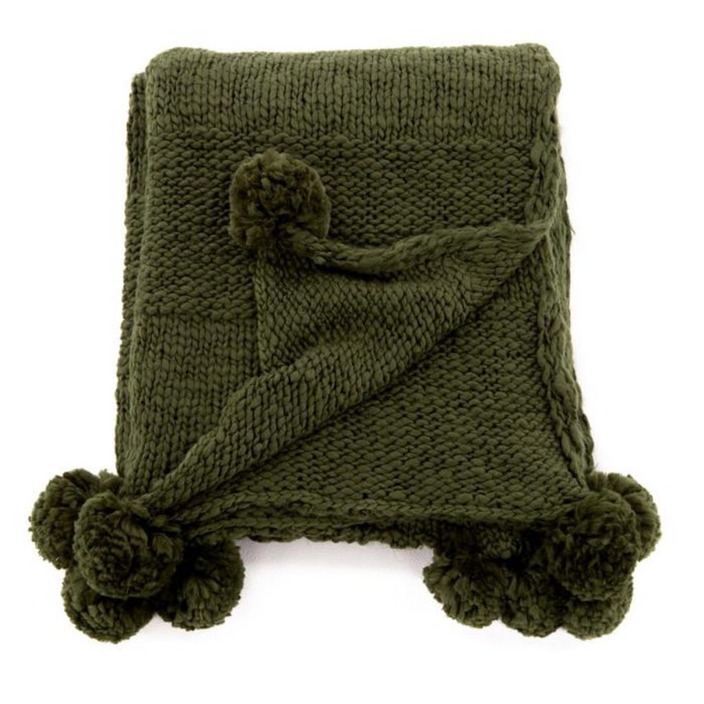 Plaid Avec Pompons Anny 130x170cm Vert Mousse
