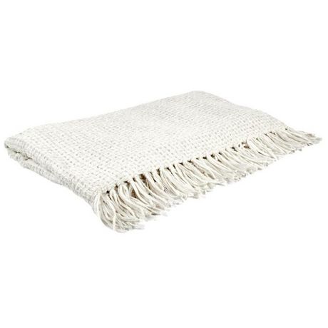 Informations Techniques : Dimensions : L. 150 x l. 125 cm Matière : 100% Polyester Spécificités : Confortable & Chic Plaid chenille gaufré Avec franges Forme rectangulaire Entretien : Lavable en machine à 30°C Pas de sèche-linge Repassage doux à 110°C Poids : 0,95 kg Couleur : Blanc