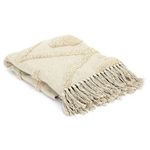 Informations Techniques : Dimensions : L. 150 x l. 120 x H. 1 cm Matières : Textile & Coton Spécificités : Ethnique & Tendance Plaid Déco Avec Franges Forme Rectangulaire Design Relief Losange Facile d'Utilisation Couleur : Écru