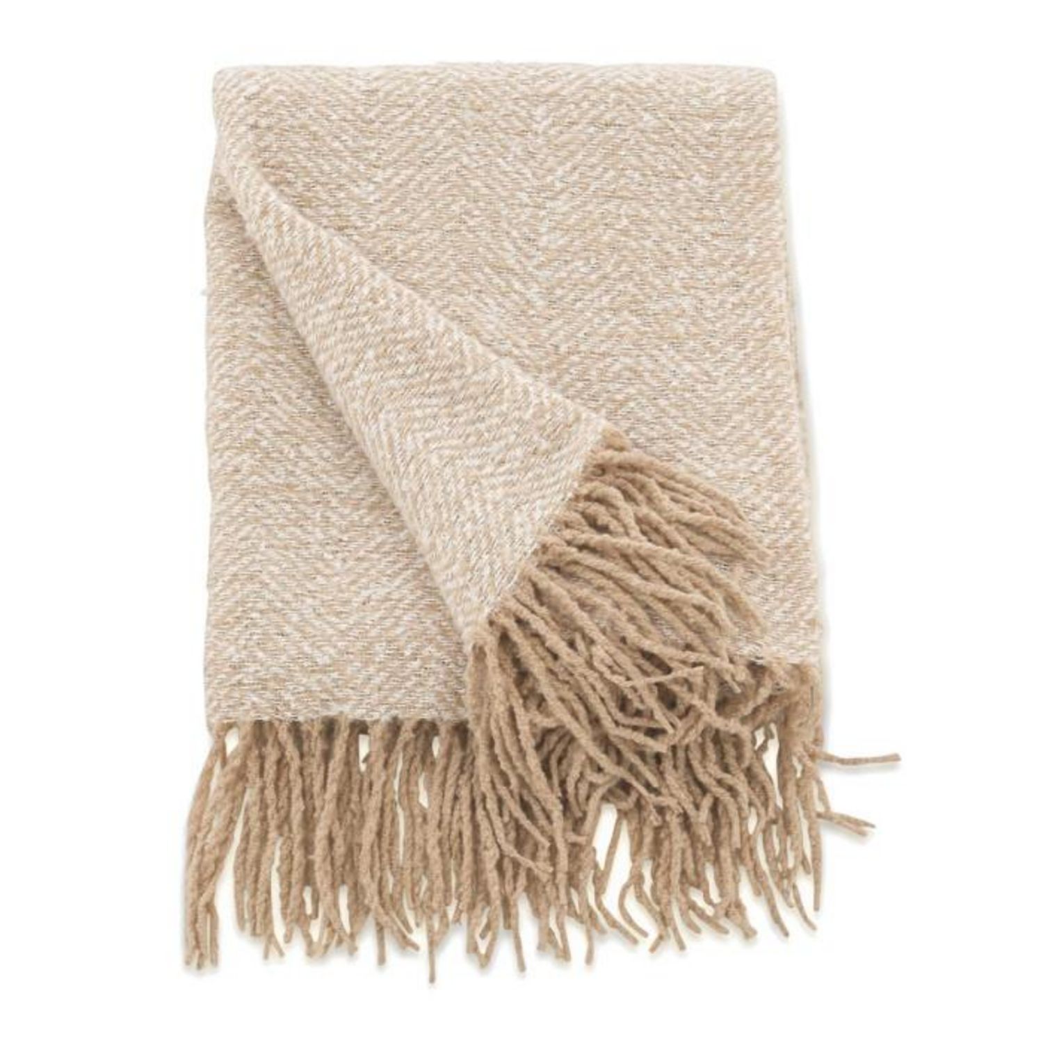 Plaid Imprimé à Franges Toby 130x170cm Beige