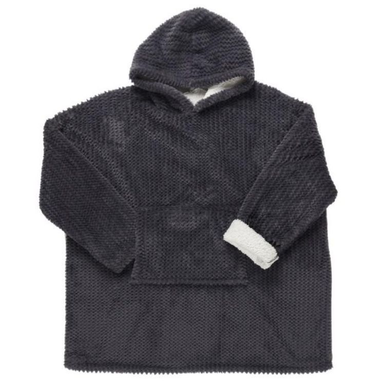 Plaid Sweat à Capuche Chevron 85x115cm Gris Foncé