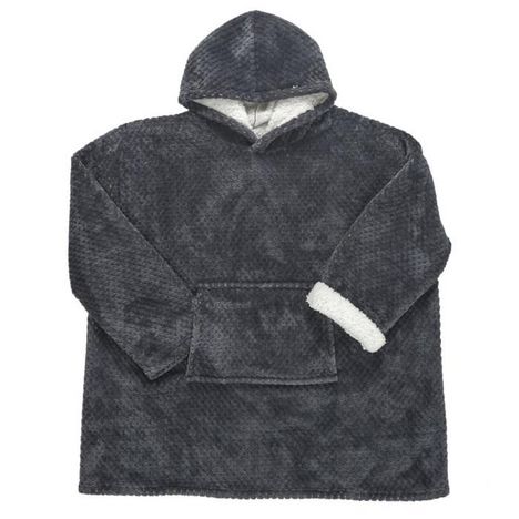 Plaid Sweat à Capuche Fausse Fourrure 85x115cm Gris Foncé