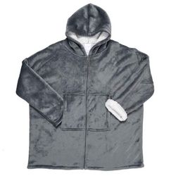 Plaid Sweat à Capuche Fermeture 85x118cm Gris