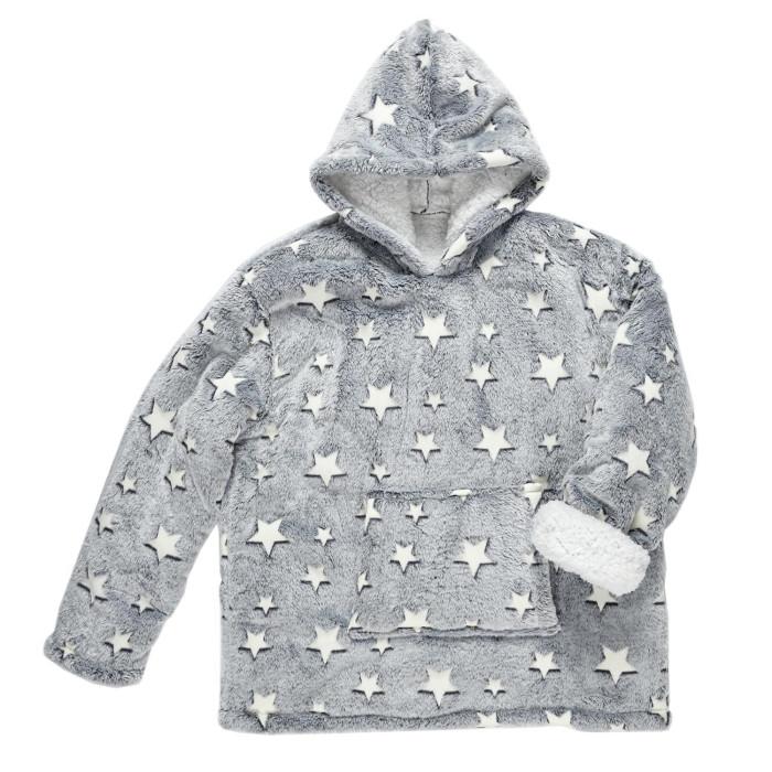 Informations Techniques : Dimensions : L. 82 x l. 51 x H. 2 cm Matière : Polyester Spécificités : Pratique & Utile Plaid Sweat à Capuche Pour Enfant Phosphorescent Design Étoiles Doux & Agréable au Toucher Taille : 6-9 ans Poids : 0,44 kg Couleur : Gris