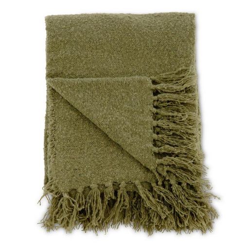 Plaid Uni à Franges Stanly 130x170cm Vert Mousse