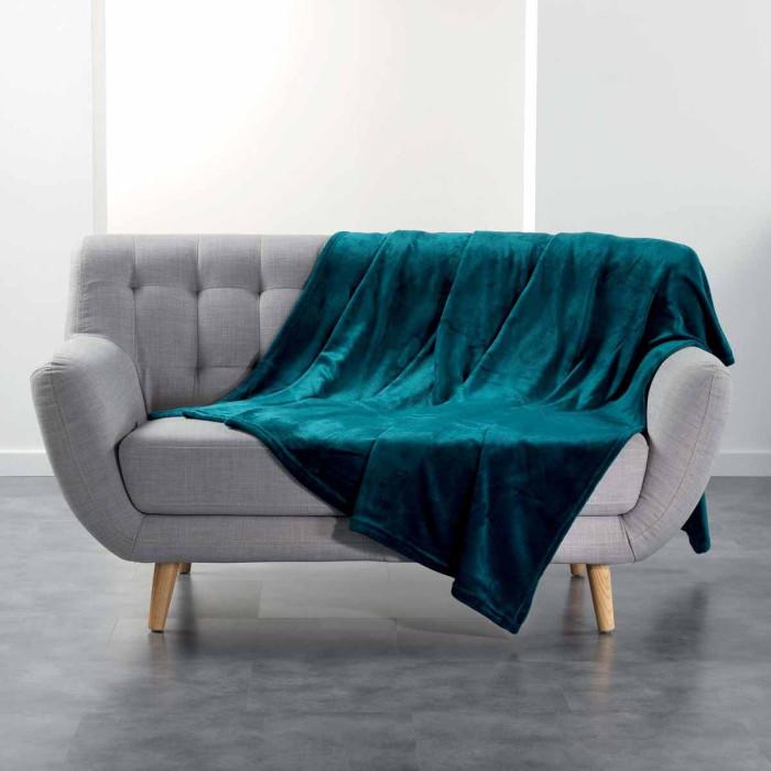 Plaid Uni en Flanelle Flanou 180x220cm Bleu