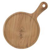 Informations Techniques : Dimensions : L. 30 x l. 43 x H. 2 cm Matière : Bois Spécificités : Tendance & Chic Planche à Découper Plateau de forme Ronde Avec Poignée Poids : 0,53 kg Couleur : Naturel