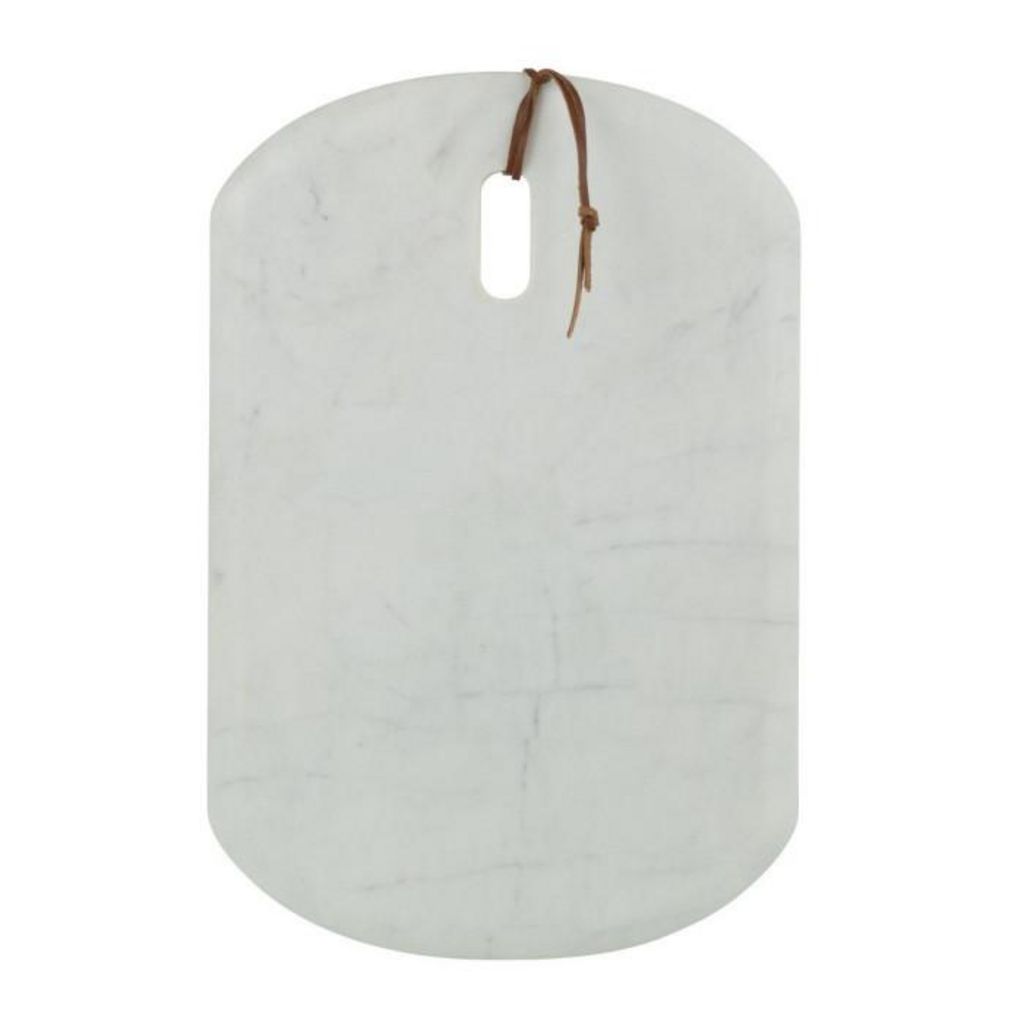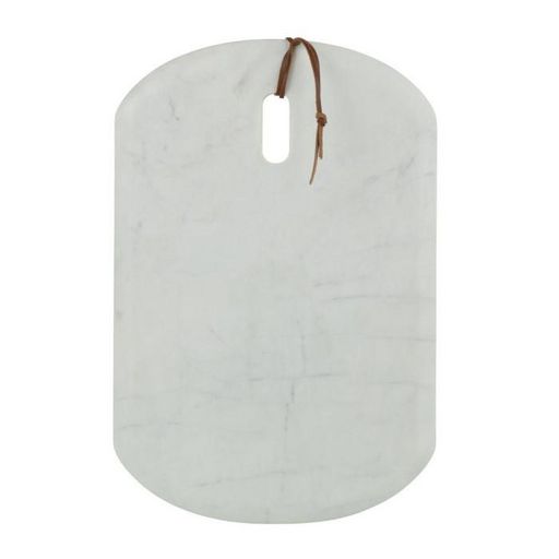 Informations Techniques : Dimensions : L. 45 x l. 30 x H. 2 cm Matières : 95% Marbre & 5% Cuir Spécificités : Pratique & Utile Planche à découper Avec passant et attache Forme rectangulaire Poids : 5,2 kg Couleur : Blanc