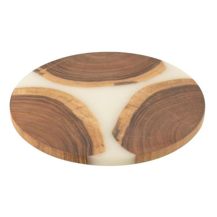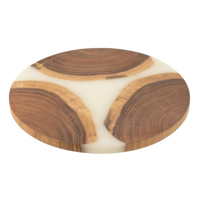 Informations Techniques : Dimensions : D. 41 x H. 2 cm Matières : 65% Bois (Acacia) & 35% Résine Spécificités : Pratique & Utile Planche à découper ronde Design bicolore Poids : 2,5 kg Couleur : Naturel & Blanc