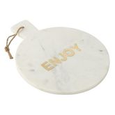 Informations Techniques : Dimensions : L. 38 x l. 30 x H. 1,5 cm Matière : 100% Marbre Spécificités : Pratique & Utile Planche de présentation Inscription Enjoy Forme ronde À suspendre Poids : 3,48 kg Couleur : Blanc