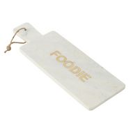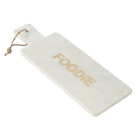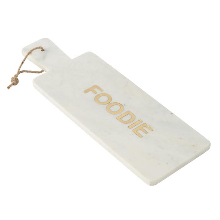 Informations Techniques : Dimensions : L. 48 x l. 16,5 x H. 1,5 cm Matière : 100% Marbre Spécificités : Pratique & Utile Planche de présentation Inscription Foodie Forme rectangulaire À suspendre Poids : 2,99 kg Couleur : Blanc