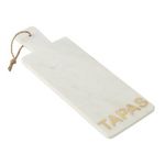 Informations Techniques : Dimensions : L. 48 x l. 16,5 x H. 1,5 cm Matière : 100% Marbre Spécificités : Pratique & Utile Planche de présentation Inscription Tapas Forme rectangulaire À suspendre Poids : 3,03 kg Couleur : Blanc