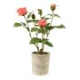 Informations Techniques : Dimensions : D. 20 x H. 39 cm Matière : Plastique & Tissu Spécificités : Déco & Utile Plante articielle Rosier en pot Rose 5 têtes Forme ronde Poids : 0,69 kg Couleur : Rose