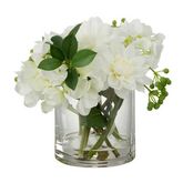 Plante Artificielle & Vase Dahlia Hydrangea 21cm Blanc