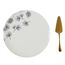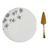 Informations Techniques : Dimensions : D. 30,6 x H. 2,4 cm Matières : Porcelaine & Acier Inoxydable Spécificités : Pratique & Utile Plat à tarte rond Imprimé aiguilles de pin Avec pelle à tarte Poids : 1,25 kg Couleur : Blanc & Doré