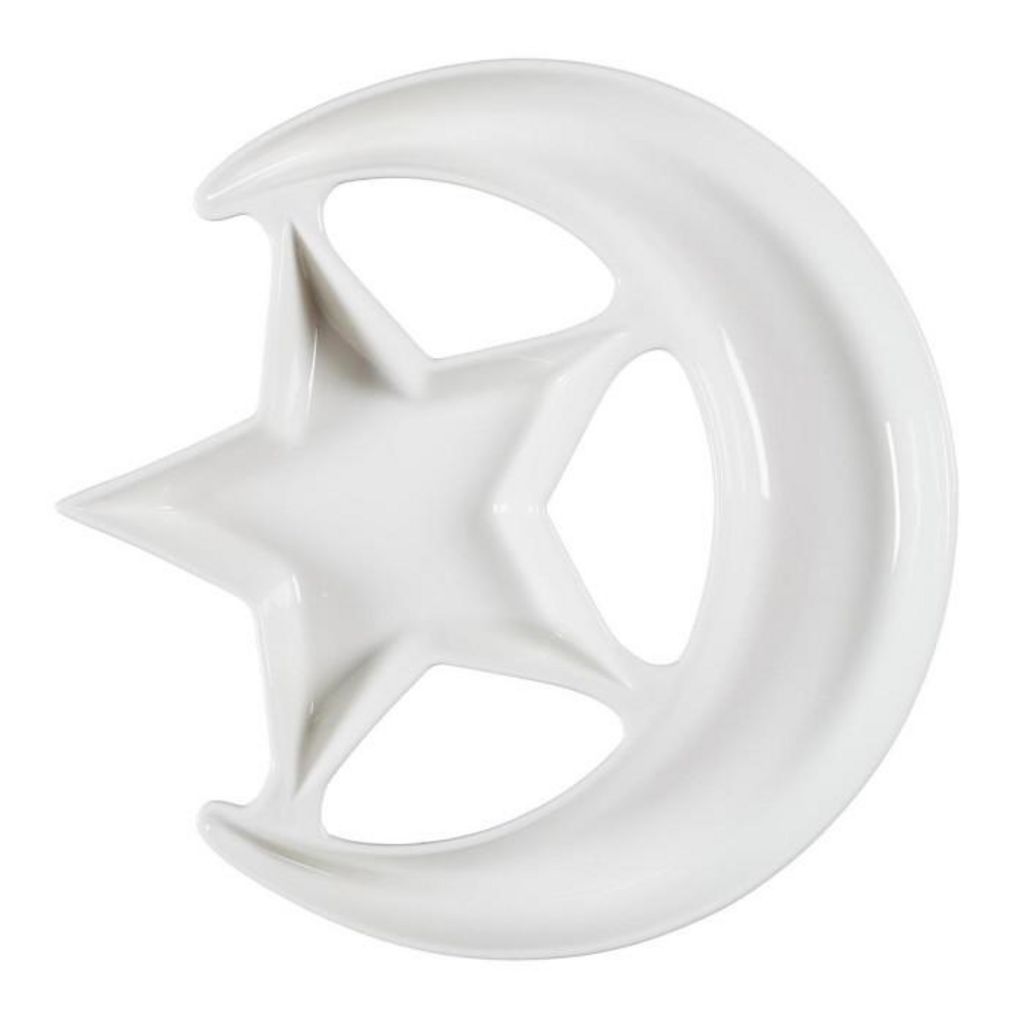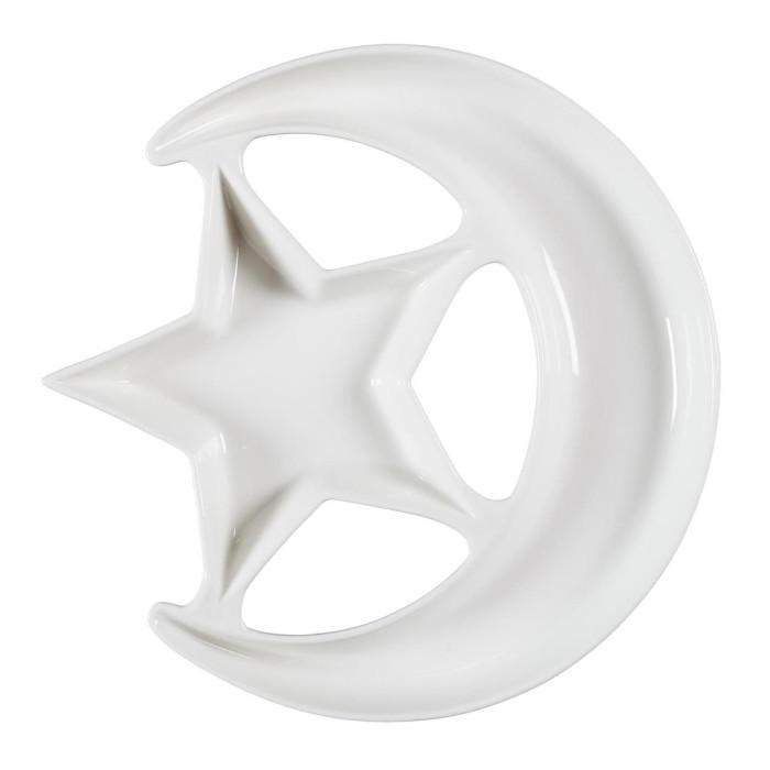 Informations Techniques : Dimensions : D. 25,5 x H. 3 cm Matière : 100% Porcelaine Spécificités : Pratique & Utile Plat de présentation Design lune et étoile Compatibilités : Lave-vaisselle et micro-ondes Poids : 0,69 kg Couleur : Blanc