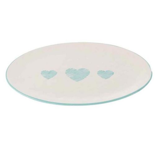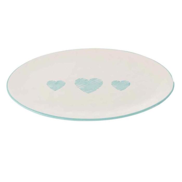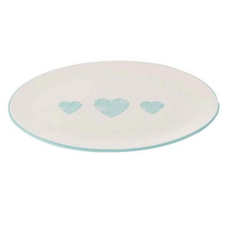 Informations Techniques : Dimensions : L. 40,5 x l. 29,2 x H. 2,6 cm Matières : Céramique Spécificités : Tendance & Pratique Plat de Présentation Motif Coeurs Couleur : Blanc & Azur