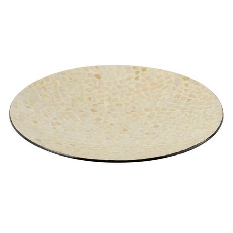 Informations Techniques : Dimensions : D. 45 x H. 6 cm Matières : Papier & Pierre Spécificités : Tendance & Moderne Plat Présentation Déco Forme Ronde Motif Mosaïque Poids : 1,095 kg Couleur : Ivoire & Crème
