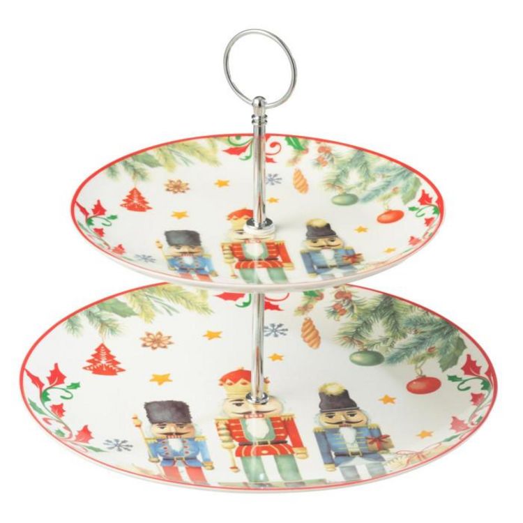 Informations Techniques : Dimensions : D. 27 x H. 24 cm Matière : 100% Céramique Spécificités : Festif & Utile Plateau de présentation de Noël Avec 2 étages Motifs casse-noisettes Forme ronde Boîte cadeau incluse À monter soi-même Compatibles : Lave-vaisselle et micro-ondes Poids : 0,93 kg Couleur