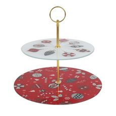 Informations Techniques : Dimensions : D. 25 x H. 22,5 cm Matières : Verre & Métal Spécificités : Déco & Utile Plateau de présentation rond Avec 2 étages Imprimé de Noël Poids : 0,81 kg Couleur : Rouge & Blanc