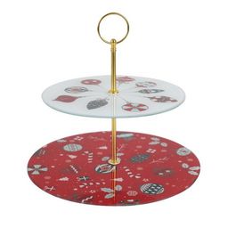 Plateau de Présentation 2 Étages Noël 25cm Rouge