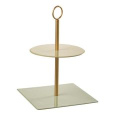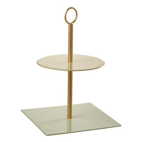 Informations Techniques : Dimensions : L. 18 x l. 18 x H. 26 cm Matière : Métal Spécificités : Utile & Esthétique Plateau à 2 niveaux Forme ronde et carrée Vendu à l'unité À monter soi-même Poids : 0,76 kg Couleur : Vert