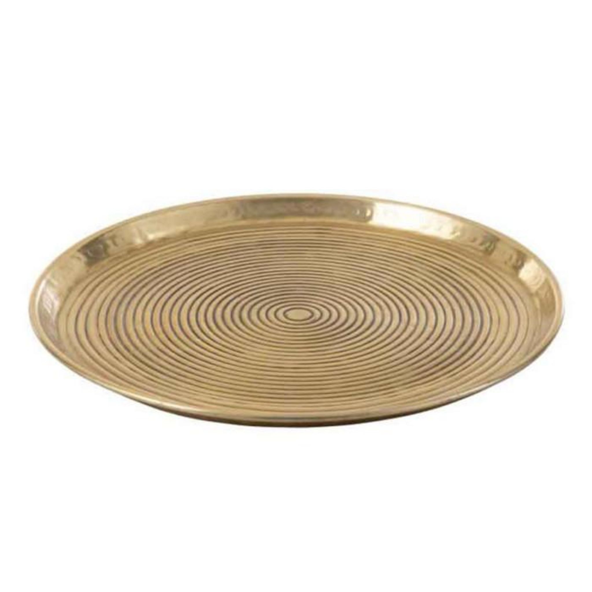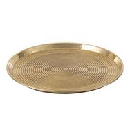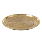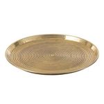 Informations Techniques : Dimensions : D. 45 x H. 0,6 cm Matière : Aluminium Spécificités : Tendance & Chic Plateau de Présentation Forme Ronde Design Anneaux Poids : 0,6 kg Couleur : Or