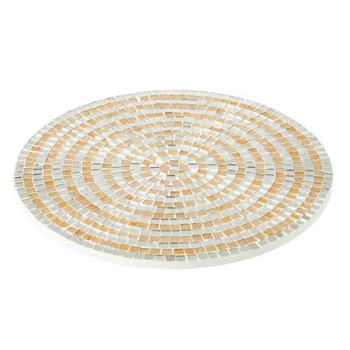 Informations Techniques : Dimensions : D. 28 x H. 0,7 cm Matières : 50% Verre & 50% MDF Spécificités : Chic & Déco Design mosaïque Forme ronde Poids : 0,54 kg Couleur : Argent & Or