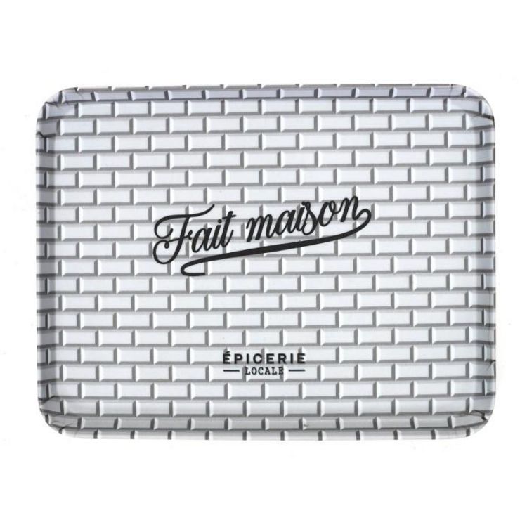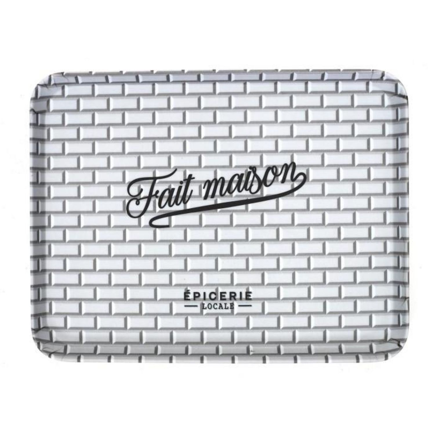 Informations Techniques : Dimensions : L. 26 x l. 20 x H. 1,5 cm Matières : Plastique & Mélaminé Spécificités : Pratique & Utile Plateau de Service Forme Rectangulaire Style Industriel Poids : 0,162 kg Couleur : Noir & Blanc