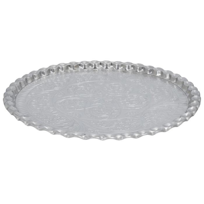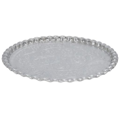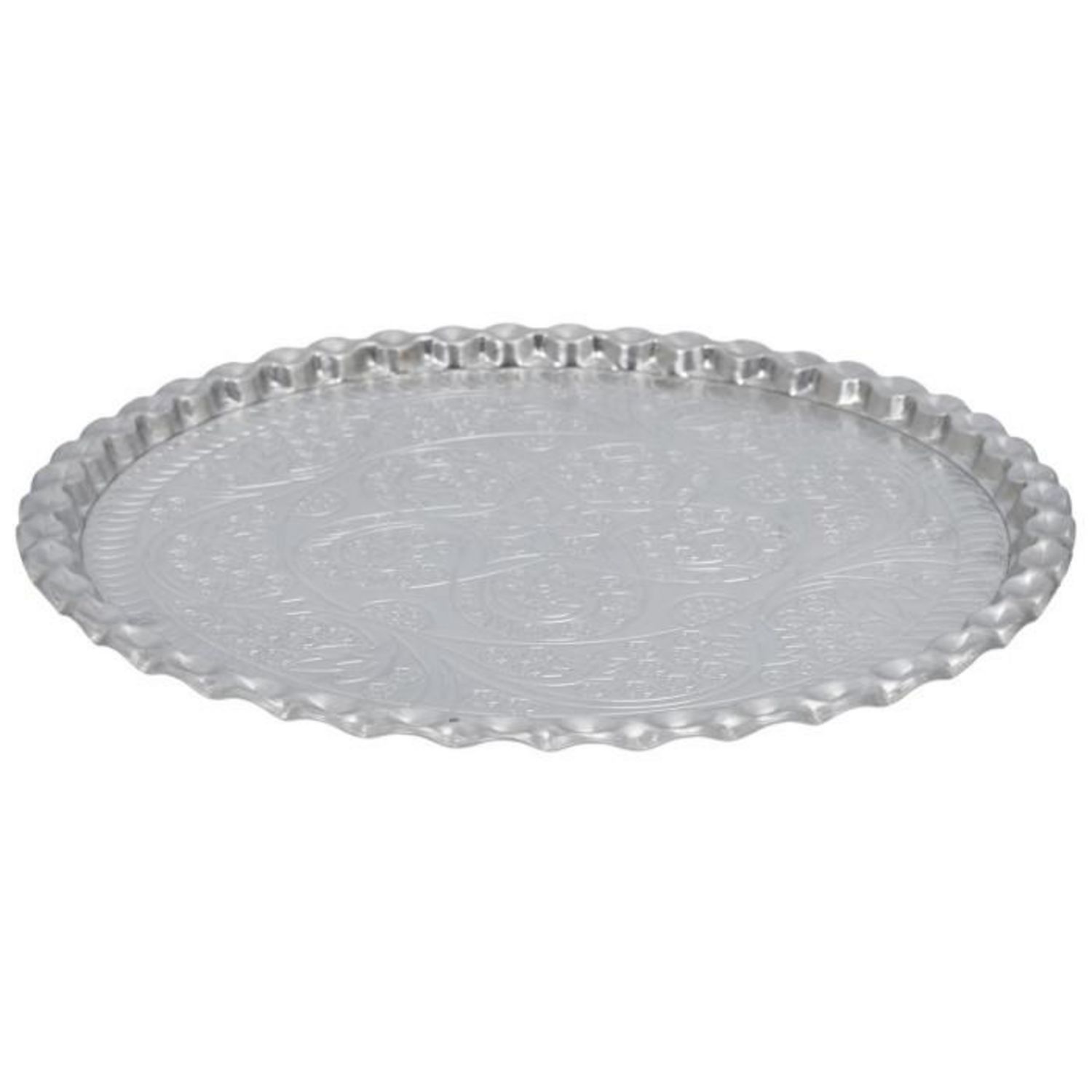 Informations Techniques : Dimensions : D. 47,5 x H. 2,5 cm Matière : Métal Spécificités : Pratique & Utile Plateau de service Desgin oriental Forme ronde Poids : 0,65 kg Couleur : Argent